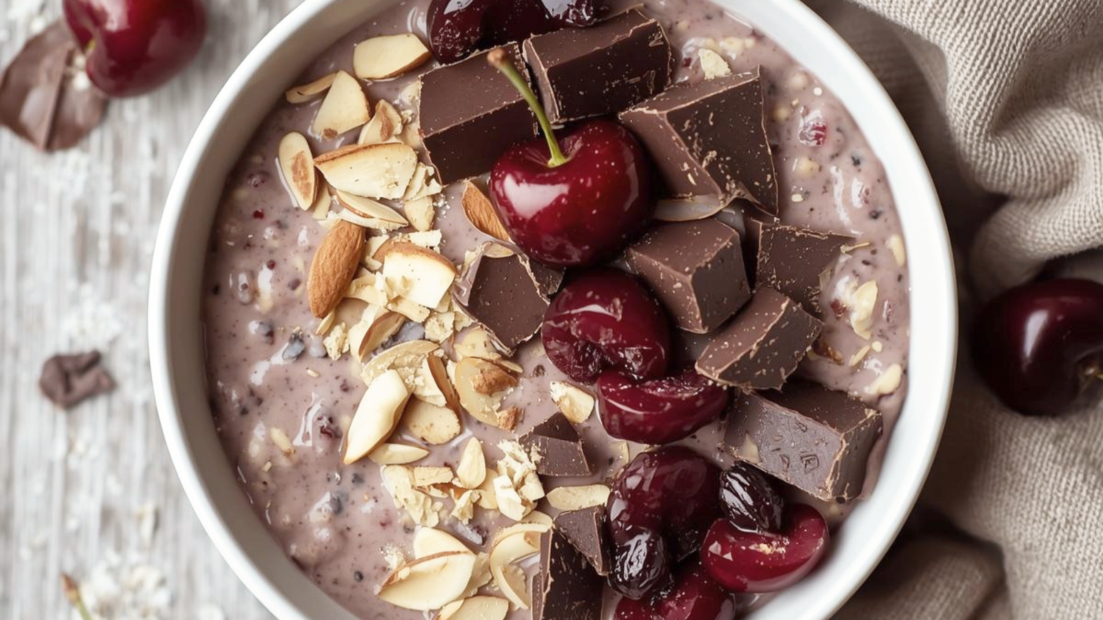 Almond + cherry feels festive and indulgent, but the yoghurt and protein balance it beautifully.